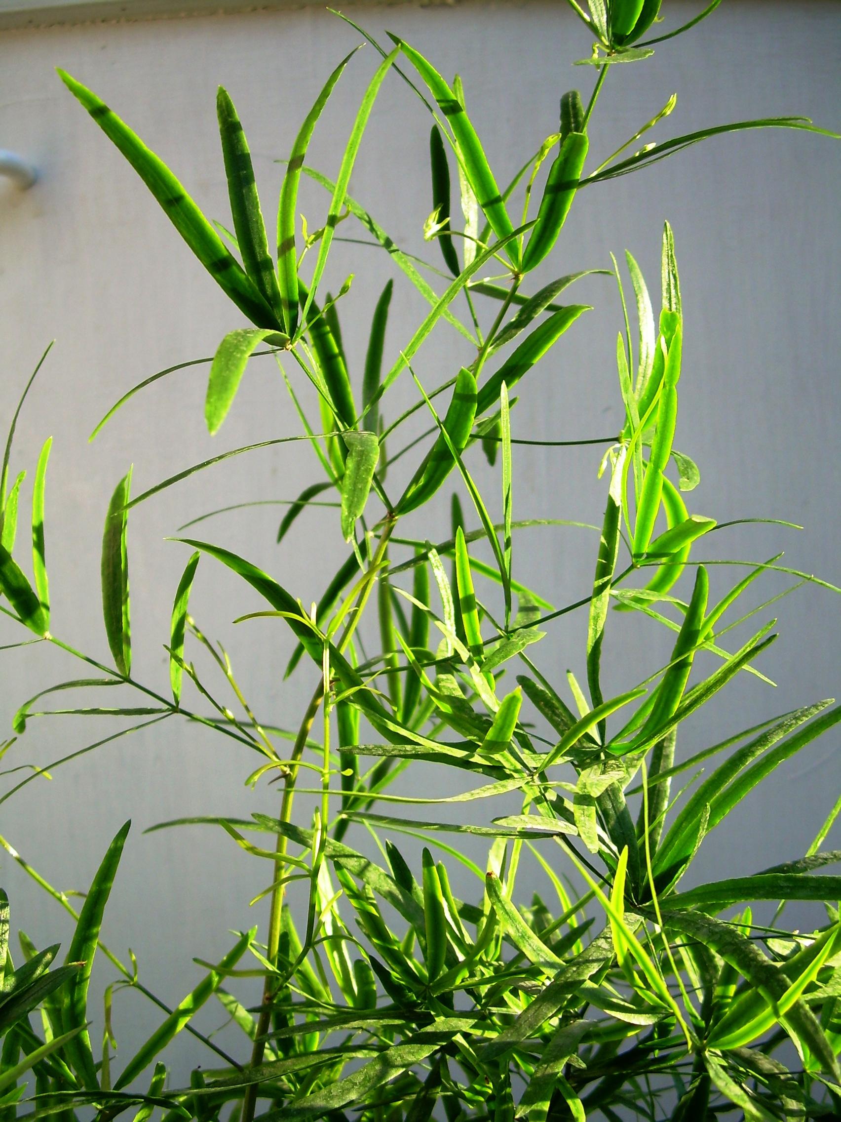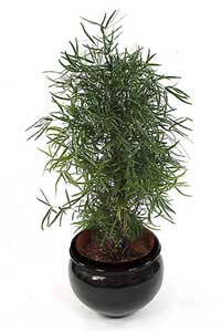 آسپارگوس را میتوان از طریق کاشت بذر در بهار، در دمای حدود ۲۱ درجه سانتیگراد در کمپوست مخصوص بذر و قلمه تکثیر کرد. رشد گیاه در این روش بسیار کند است. حتی زمانی که نشاءها جوانه می زنند، میزان رشد گیاه به قدری کند است که برای داشتن گیاهی به اندازه معقول و دلخواه، لازم است چند ماه منتظر بمانید. روش بهتر، برای تکثیر سریعتر گیاه، تقسیم بوته مادری، در اواسط بهار و تابستان است. ابتدا خاک را مرطوب کرده و گیاه مادری را از گلدان بیرون آورید. ریشه های گیاه را از هم باز کنید و با استفاده از یک چاقوی تیز، توده ریشه ها را به قسمتهای مساوی و مرتب تقسیم کرده، هر کدام را در گلدانی با قطر دهانه ۹ سانتیمتر، حاوی کمپوست گلدانی با پایه پیت قرار دهید دقت کنید که خاک را همیشه مرطوب نگاه داشته و گیاهان را در محیطی با نور مناسب ولی دور از تابش مستقیم خورشید قرار دهید تا رشد کنند.