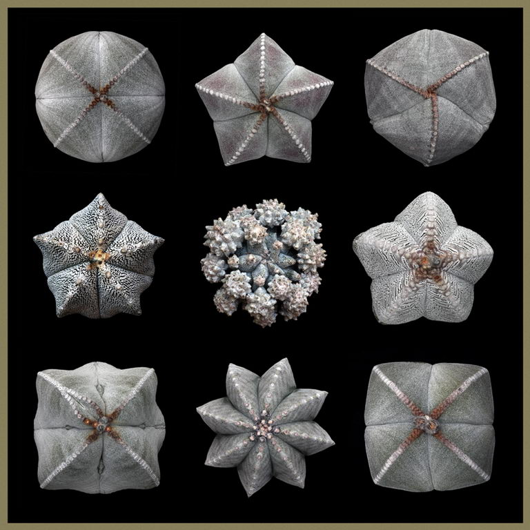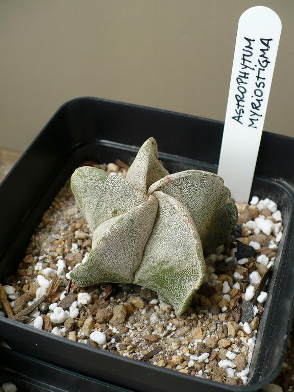 Astrophytum myriostigma از خانواده Cactaceae (کاکتوسسانان) و از جنس Astrophytum است. نام جنس از ریشههای یونانی astro (ستاره) و phyton (گیاه) گرفته شده و به فرم ستارهای مقطع ساقه اشاره دارد. صفت گونهای myriostigma به معنی «دارای لکههای بسیار» است و به پولکها/تریکومهای سفیدِ سطح ساقه اشاره میکند که نقش مهمی در بازتاب نور و کاهش تبخیر دارند.