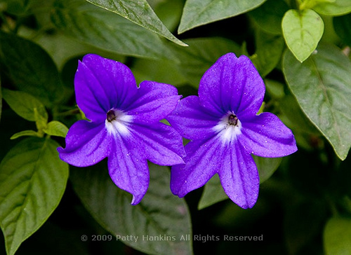 برگ های برووالیا سبز، براق، نوك تیز و تخم مرغی شكل می باشند. گلها بنفش متمایل به آبی و عرض آنها در حدود 5 سانتی متر است كه در اواخر بهار تا اواخر تابستان ظاهر می شوند گل یاقوت واریته ای دارد كه در زمستان به گل می رسند و گلهای آن به رنگ آبی پر رنگ می باشد.
