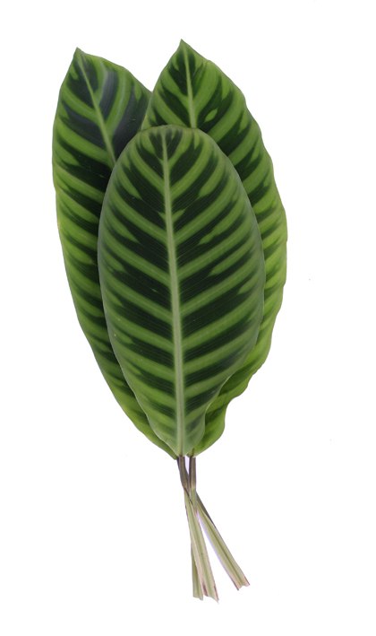 برگ های کالاته آ بسیار لطیف و بزرگتر از برگ های مارانتا و دارای نقش و نگار شانه ای شکل است. دمبرگ های آن نسبتاً بلند بوده، گیاهی پررشد می باشد.