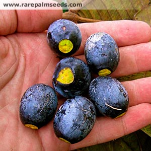 پوست خارجی میوه ها به رنگ تیره و براق در حالیکه که گوشت آنها به رنگ زرد و دارای یک بذر کشیده و طویل است. این میوه ها زمانی که می رسند سخت و غیرخوراکی هستند. برای مصرف خوراکی باید آنها را برای مدتی در آب گرم خیساند. مزه ی این میوه ها مشابه طعم و مزه ی آووکادو است و معمولاً با نمک یا ادویه های مخصوص خورده می شود. هر میوه دارای یک بذر می باشد.