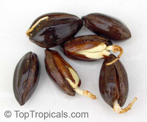 برای تکثیر خانگی، هستههای سالم از میوه رسیده انتخاب و بقایای گوشت میوه کاملاً پاک شود. بذرها در بستر سبک و زهکشدار (مانند ترکیب کوکوپیت و پرلیت) در گرما و رطوبت یکنواخت بهتر جوانه میزنند. کاشت کمعمق، آبیاری منظم بدون غرقابی، و دمای ثابت (حدود 25 تا 30 درجه سانتیگراد) توصیه میشود؛ جوانهزنی ممکن است زمانبر باشد.