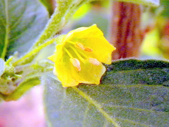 گل ها به رنگ زرد روشن و زنگوله ای شکل بوده که مشخصه ی آنها همانند سایر فلفل ها در نحوه ی قرار گرفتن پرچم ها و مادگی است.