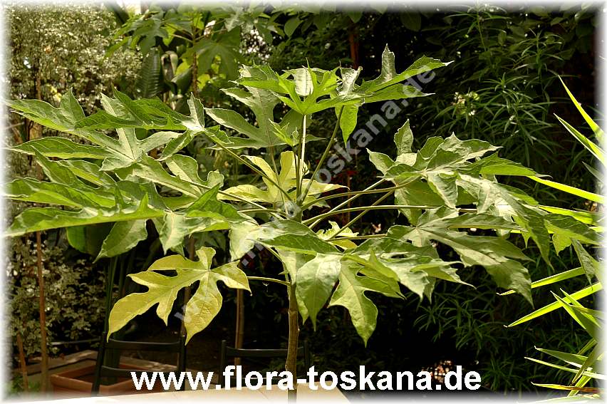 برگ ها نسبتاً بزرگ، پنجه ای، با رگبرگ های برجسته هستند که روی دمبرگ هایی طویل و توخالی قرار گرفته اند. میانگین طول عمر هر برگ از 4 تا 6 ماه می باشد. این برگ ها در طول ماه های سرد زمستان به تدریج می پوسند و می ریزند.