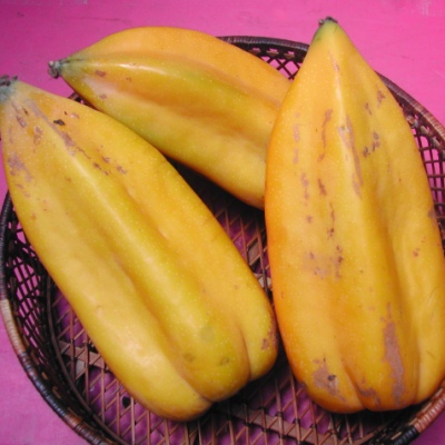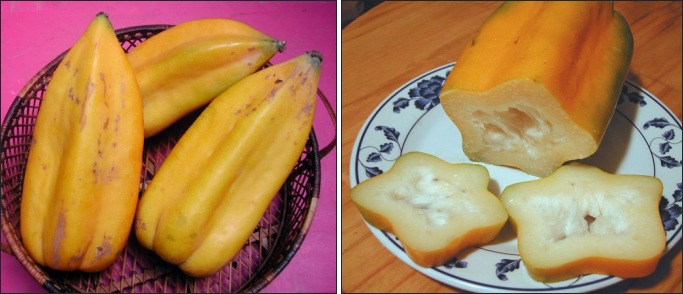 میوه های باباکو به صورت پارتنوکارپی تشکیل می شوند به طوری که هیچ بذری در میوه ها وجود نخواهد داشت. میوه های جوان بلافاصله پس از گلدهی تکشیل شده، رشد کرده و به حداکثر اندازه های خود در طی ماه های اکتبر تا نوامبر می رسند. در این زمان، طول میوه ها حدود 12 اینچ و عرضشان حدود 8 اینچ خواهد بود. این میوه ها دارای پنج زاویه ی مشخص، نوک تیز و ساقه ای گرد می باشند. بلوغ میوه ها با تغییر رنگ آنها از سبز به زرد شروع می شود. ابتدا کناره های میوه تغییر رنگ داده و به تدریج تمام سطح میوه به رنگ زرد تبدیل می شود. برداشت میوه ها به تدریج از قسمت های پایین تر به سمت قسمت های بالاتر تنه انجام می شود. گوشت این میوه ها بسیار آبدار و کمی ترش و شیرین است. مزه ی میوه های باباکو بین مزه توت فرنگی، گریپ فروت و پاپایا است. پوست این میوه ها نیز نارک، صاف و خوارکی است.
