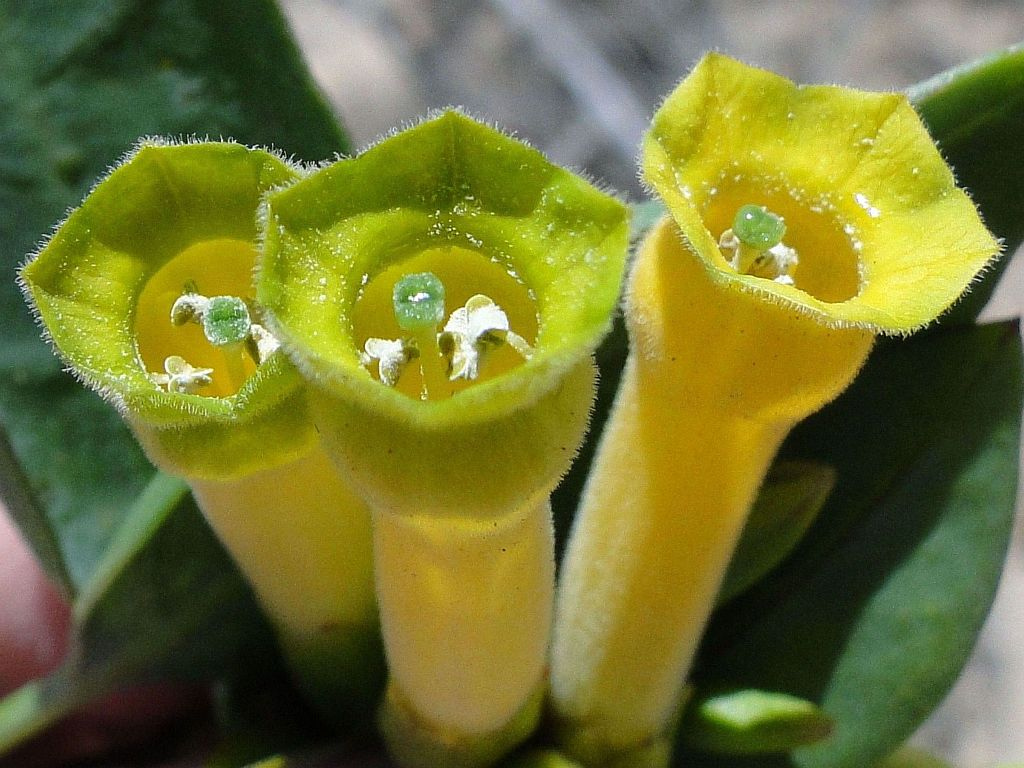 ساقه های افقی آبدار که در نقطه رشد به سمت بالا منحنی شده اند. برگ ها آبدار هستند و در امتداد ساقه قرار دارند. به رنگ زرد تا سبز چمنی و هنگامی که مسن هستند به رنگ قرمز . گل به صورت منفرد و 100-150 میلی متر قطر دارند و به رنگ زرد تا صورتی کم رنگ و در اواخر زمستان و بهار گل ها در می آیند.