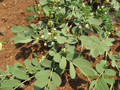 این گونه خزاندار، چوبی، چند ساله و بوته ای است. ریشه عمودی داشته و ساقه های محکم آن معمولا کمتر از 2 متر ارتفاع دارد. این ساقه ها یا شاخه های کوچکتر معمولا بدون کرک و یا به مقدار کمی کرکدار هستند. برگها مرکب بوده و در هر برگ 6-4 برگچه وجود دارد که به صورت متناوب قرار گرفته اند. برگچه ها بیضی شکل بوده و در هر دو سمت به میزان کمی کرکدار است. گلدهی معمولا در فصل بارندگی رخ می دهد ولی در مناطق مرطوب گلدهی می تواند در تمام طول سال نیز انجام شود.