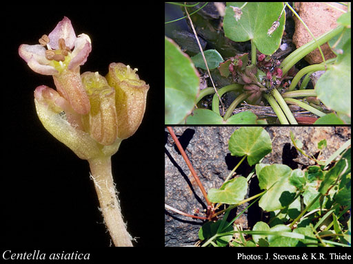 سنتلا معمولاَ در نواحی گرمسیری و زمین های باتلاقی رشد می کند. ساقه های این گیاه بلند و باریک و دارای استولون های رونده ای به رنگ سبز تا سبز مایل به قرمز است که گیاهان را به یکدیگر متصل می کند. برگ ها به رنگ سبز، صاف و صیقلی، دارای نوک گرد و رگبرگ های پنجه ای می باشند. این برگ ها دارای رگبرگ هایی به طول 2 سانتیمتر هستند. ساقه های زیرزمینی حاوی ریزوم هایی است که به صورت عمودی و به سمت پایین رشد می کنند. این ساقه های زیرزمین یا ریزوم ها کرم رنگ بوده و پوشیده از ریشه های مویین هستند.