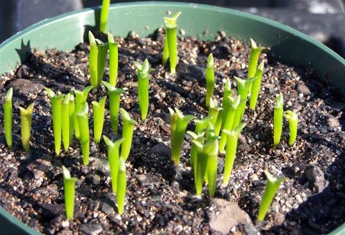 ساقه را با چاقوی تیز بریده و قطعات بریده شده را برای مدت چند ساعت در سایه قرار دهید تا شیرابه آن خارج شده و محل بریدگی خشک شود. در هنگام کاشت مواظب باشید تا قلمه ها سر و ته کاشته نشوند.