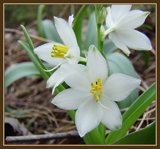 این گیاه دارای شاخ و برگ زیاد و دارای ساقه های ریشه مانند زیرزمینی است. برگ های آن نیزه ای شکل و گل آن ستاره مانند به رنگ سفید است که 2 سانتی متر طول دارد