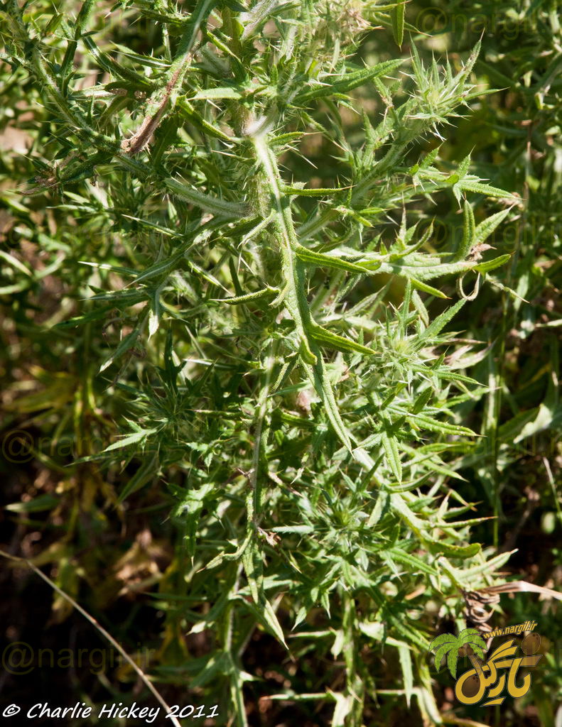 برگ های اولیه این گیاه به صورت روزت بر روی زمین قرار می گیرند، در مراحل بعدی رشد ساقه افراشته می شود و بسیار منشعب است، برگ ها به شدت تیغدار هستند.