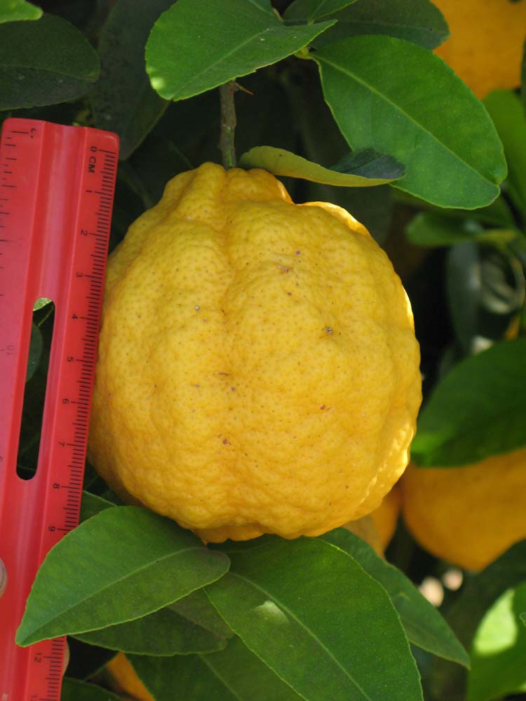 میوه ها تخم مرغی شکل و دارای برآمدگی در انتها، به طول 7 تا 12 سانتیمتر می باشد. پوست میوه ها خشن و ناهموار، به رنگ زرد، معطر، دارای روغن های فرار و به ضخامت 6 تا 10 میلیمتر می باشد. پالپ میوه ها به رنگ زرد کمرنگ، دارای 8 تا 10 بخش، آبدار و اسیدی و ترش مزه است.