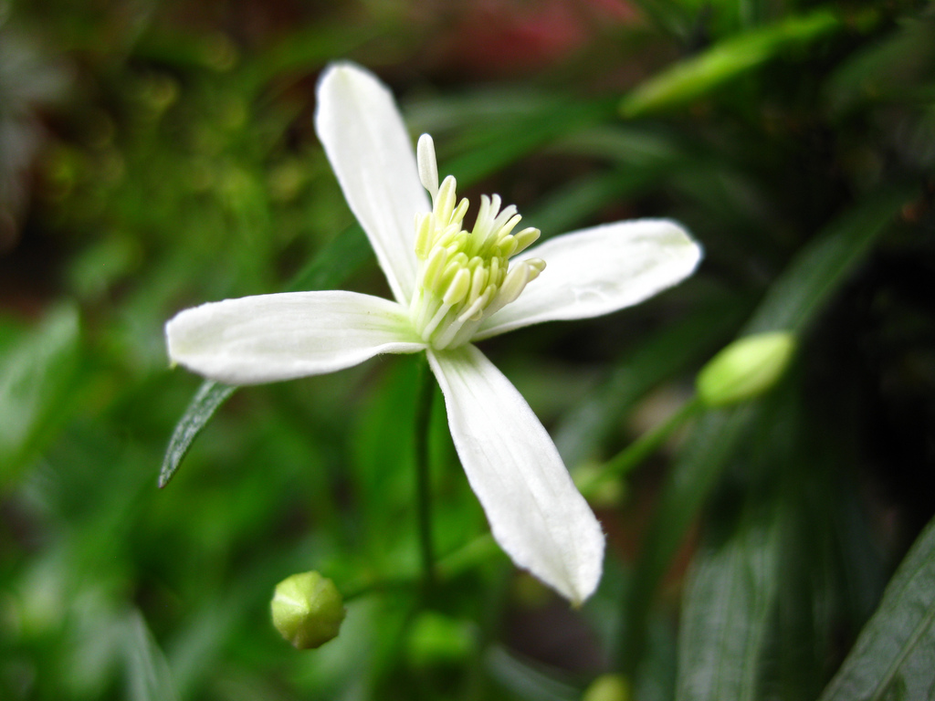 گلهای متمایل به سفید رنگ کلماتیس 2 سانتی متر عرض داشته و در ماههای خرداد و تیر شکوفا میشوند میوه فندقه آن در ماههای شهریور و آبان میرسند ودارای نوکهایی با ریشکهای پر مانند میباشد.