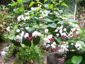 این گیاه در طول رشد خود به 4 متر بلندی میرسد، دارای برگ های تخم مرغی یا مستطیلی به طول 8 تا 17 سانتی متر است. گلها در خوشه های 8 تا 20 تایی با هم تشکیل میشوند. رنگ گلها سفید خالص به ارغوانی کمرنگ با مرکز قرمز میباشد گل ها دارای پنج لوب و 2.5 سانتی متر قطر و جام قرمز گل 2 سانتی متر قطر دارد.