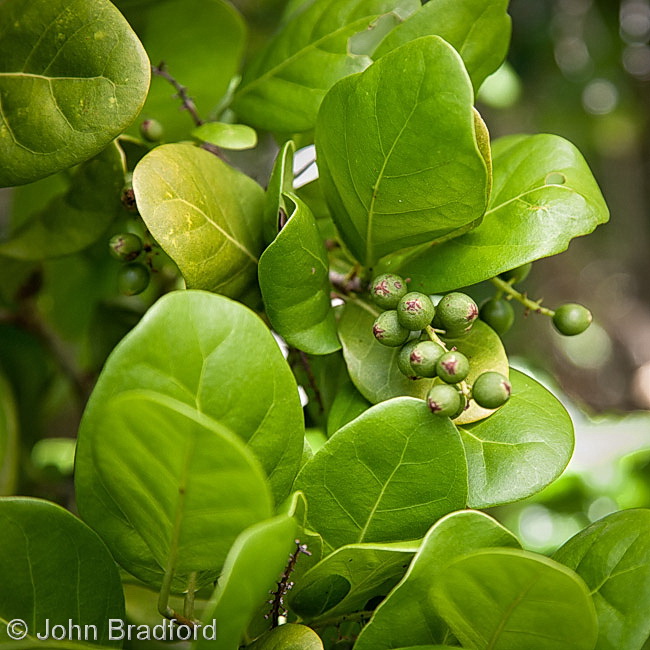 این گونه معمولاً در زیستگاههای ساحلی مانند حاشیهٔ جنگلهای ساحلی، بوتهزارهای شنی و نواحی نزدیک به مانگروها دیده میشود. تحمل نسبی به شوری، خشکی و باد باعث میشود در محیطهای کمعمقِ خاک و خاکهای آهکی نیز پایدار بماند.