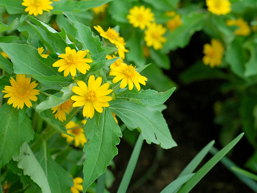 گل ها دارای چندین گلبرگ به رنگ زرد هستند. مرکز گل سیاه رنگ است. در اواخر تابستان تا اوایل پاییز به گل می نشیند. گل ها به صورت انفرادی بر روی شاخه ها ایجاد می گردند.