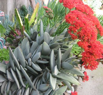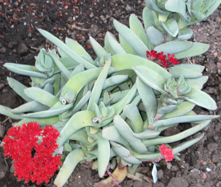 "گیاه کراسولا فالکاتا" گیاهی گوشتی از جنس و خانواده کراسولا و بومی آفریقای جنوبی است. برگ ها به رنگ سبز مایل به خاکستری با بافتی برجسته بر روی گیاهانی که می توانند تا حدود 0.61 متر نیز ارتفاع داشته باشند، رشد می کنند. این برگ ها داسی شکل یا به شکل پروانه های هواپیما بوده که به صورت جفت روی هم قرار گرفته اند. گل ها کوچک و به رنگ قرمز دیده می شوند. این گل های زیبا به صورت خوشه های انبوه در بالای محور برگ ها در طی تابستان نمایان می شوند. این گونه های گیاهی بسیار مقاوم به خشکی بوده و مناسب کشت در گلدان ها می باشند.