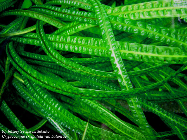 Cryptocoryne Balansae یکی از زیبا ترین و گران ترین گیاهان آکواریومی بوده که به تغییرات دما ، سختی آب و افزایش کلر آب بسیار حساس بوده و نگهداری آن به مبتدیان توصیه نمی شود .