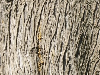 پوست شاخه هاي جوان سبز تيره تا روشن و در يكساله ها قهوه اي روشن تا قرمز و برجستگي هايي ناشي از اثر فلس ها بر روي آن مشاهده مي شود . در چند ساله به رنگ قهوه اي تيره ، صاف و اي فلس دار است ، در شاخه هاي اصلي تنه شيارهاي باريك و نيمه عميق وجود دارد . پوست تنه الياف دار و شيار ها به صورت شبكه اي در هم رفته و چروكيده ، عميق و پهن و رنگ آن قهوه اي روشن تا خاكستري است .