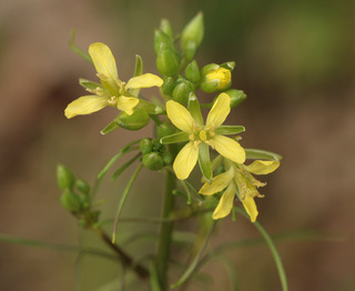 برگ ها دارای بریدگی های عمیق، 3-2 بار تقسیم شده است. گل های آن زرد رنگ است. میوه خورجین و کشیده می باشد. این میوه ها به طول 15 تا 35 میلیمتر و عرض یک میلیمتر و به حالت راست و در داخل غلاف خورجین دانه ها قرار دارند. تخم آن ریز، کمی دراز و در دو رنگ است .یکی مایل به قرمز و طعم آن کمی تلخ و دیگری به رنگ قرمز تیره است.