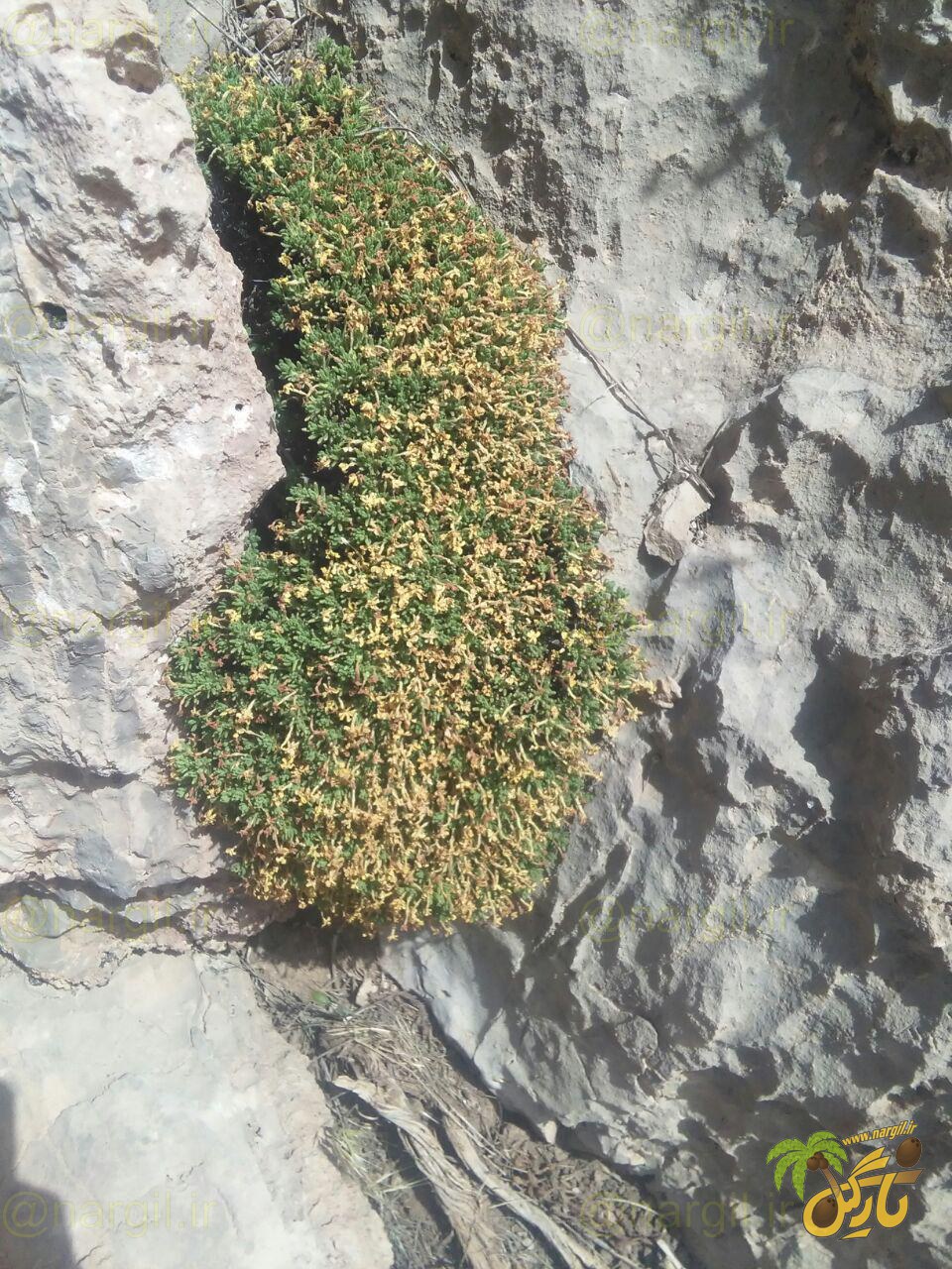 این گونه بومی ایران است و در زیستگاههای کوهستانیِ خشک تا نیمهخشک یافت میشود. زیستگاه شاخص آن دیوارهها و پرتگاههای سنگی، شکاف صخرهها و برونزدهای آهکی است؛ جایی که خاک بسیار کمعمق بوده و گیاه با تکیه بر ریزمحیطهای محافظتشده از فرسایش و تبخیر شدید، بقا مییابد. شکل رشد بالشتکی/کوسنی و تراکم برگها معمولاً به کاهش اتلاف آب و مقاومت در برابر باد و نوسان دما کمک میکند.
