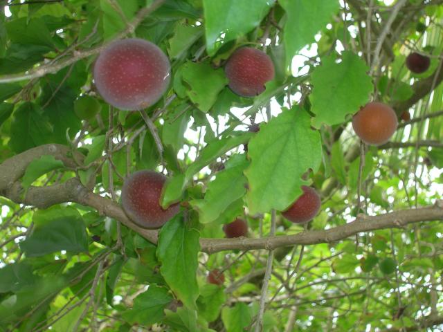 میوه ها خوراکی، گرد، مخملی، سته، به رنگ زرد تا ارغوانی، به قطر 2 تا 4 سانتیمتر و حاوی چندین بذر می باشند. این میوه ها دارای مزه ای مطلوب و ترش و بسیار آبدار هستند.
