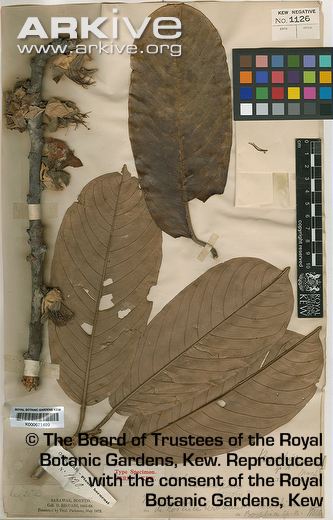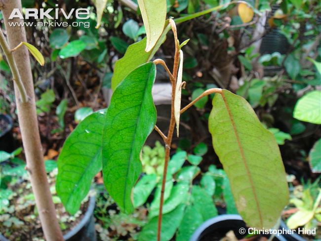 برگ ها همیشه سبز، بیضوی تا کشیده و به طول 10 تا 18 سانتیمتر می باشند.