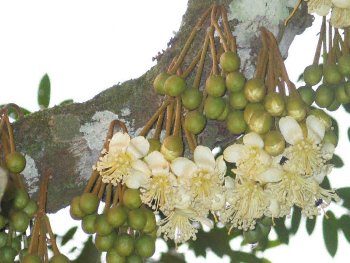 این درخت میوه های معطر دارد. رقم گوشت زرد آن durian simpor خوانده می شود. میوه حالت کروی شکل داشته و حدود 10 تا 15 سانتی متر قطر دارد. برگها بیضی و کشیده هستند. گلها 25 میلی متر قطر دارند و سفید متمایل به قرمز هستند.