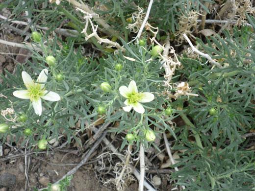 برگک کما بیش 8 عدد ، نوک تیزف نامساوی کاسه گل با دندانه های نوک تیز، جام گل نامشخص، مایل به زرد ، میوه مستطیلی گلابی فاقد پره می باشد.