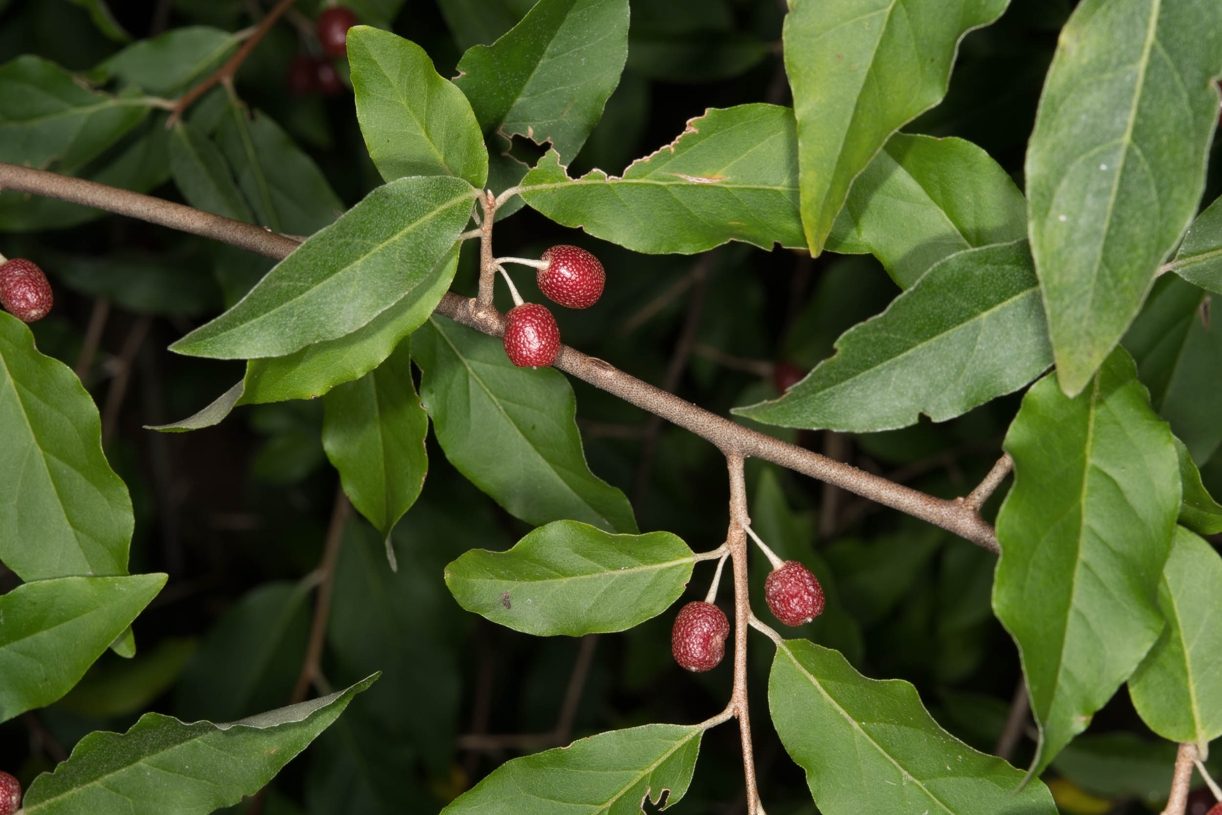 Elaeagnus umbellata با نام فارسی سنجد پاییزی، از خانواده Elaeagnaceae و در جنس Elaeagnus قرار دارد. این گونه درختچهای خزانپذیر با ارتفاع معمولاً ۲ تا ۴ متر است و شاخههای خاردار و برگهای بیضی نقرهای دارد. گلها کوچک، لولهای و معطر بوده و میوهها ستههای قرمز براق با لکههای نقرهای هستند. این گونه به دلیل حضور گرههای ریشهای همزیست با باکتریهای تثبیتکننده نیتروژن، در خاکهای فقیر نیز بهخوبی رشد میکند.