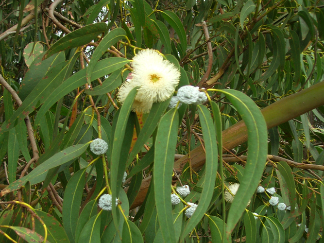 اکالیپتوس درختی بلند با عادت رشد مستقیم است. برگ های این گیاه نیزه ای شکل تا نیزه ای پهن، به رنگ سبز تیره و شفاف است. طول برگ ها 10 تا 16 سانتی متر و عرض آنها 2 تا 3 سانتی متر است. ارایش برگ های این گیاه بر روی شاخه ها بصورت متناوب می باشد. گل های سفید رنگی این گیاه در اواسط پاییز تا اواخر زمستان ( از آپریل تا آگست) ظاهر می شوند. گل ها بسیار کوچک و دارای 5 تا 8 میلی متر طول و 4 تا 7 میلی متر عرض می باشند.