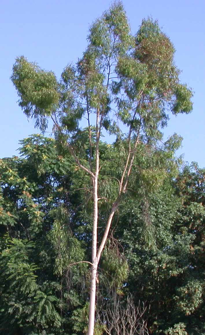 اکالیپتوس درختی بلند یا پوستی صاف، زبر یا فلس مانند است. رنگ پوست آن خاکستری تا خاکستری مایل به قهوه ای است. ارتفاع این گیاه در مرحله بلوغ به 50 تا 80 متر نیز می رسد. بیشتر در مناطق ساحلی و نیمه گرمسیری می روید.