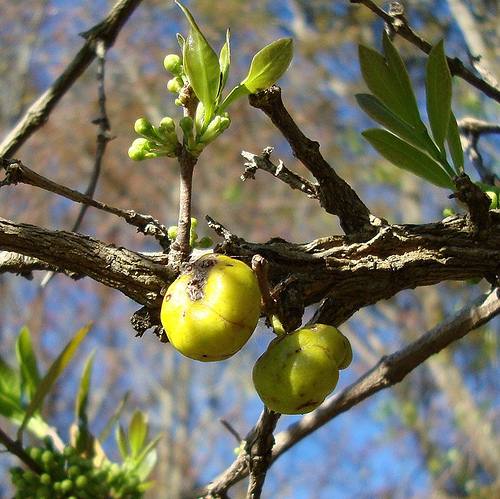 میوه ها گِرد، به قطر 3 تا 4 سانتیمتر، به رنگ زرد تیره و کرکدار، با پالپی شیرین هستند. هر میوه حاوی یک یا تعداد بیشتری (به ندرت دو عدد) بذر می باشد.