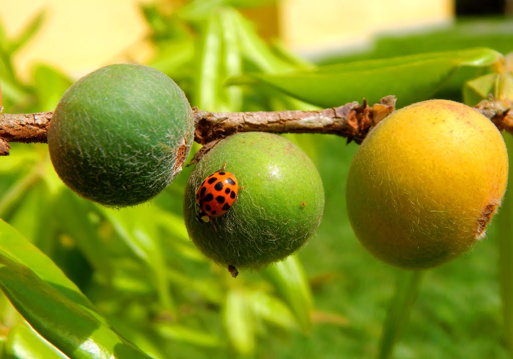 کرم میوه و لارو شبپرهها با سوراخکردن میوهها باعث ریزش زودرس و کاهش کیفیت میشوند. برای کنترل، جمعآوری و نابودی میوههای آلوده، جذبکنندههای نوری و فرمونی، و در صورت طغیان، مصرف حشرهکشهای انتخابی با تکیه بر توصیه کارشناس ضروری است. شتهها و مگسهای میوه نیز با مکیدن شیره و تخمریزی در بافت میوه خسارت میزنند؛ شستوشوی منظم شاخساره با آب و صابون حشرهکش ملایم و نصب تلههای زرد چسبنده توصیه میشود.