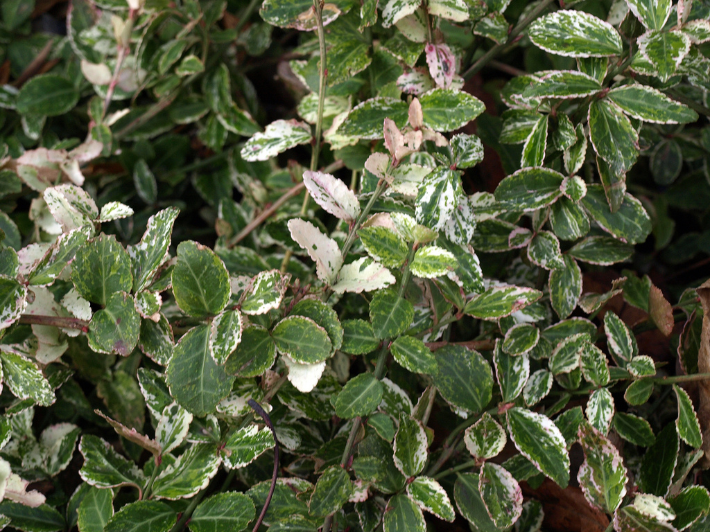 اين نوع شمشاد داراى برگ‌هاى کوچک به‌ رنگ‌هاى سبز روشن، سبز با لکه‌هاى سفيد و سبز با لکه‌هاى زرد و صورتى است.