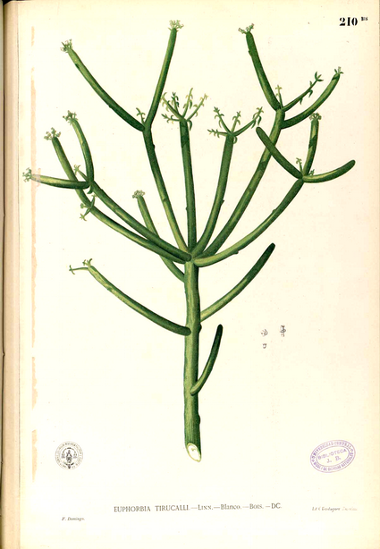 این گیاه به عناوین دیگری چون گیاهان Firestick ، درخت فرفیون هند ، درخت مداد ، چوب در آتش و یا شیر بوش شناخته شده است