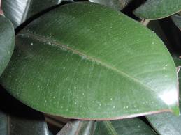 شپشک آردآلود، شپشک سپردار و کنه تارتن به برگهای Ficus elastica آسیب میزنند. برگها چسبناک و زرد میشوند. درمان: جداسازی، شستوشو با آب ولرم، سپس محلول صابون حشرهکش یا روغن نیم؛ تکرار هر ۷–۱۰ روز.