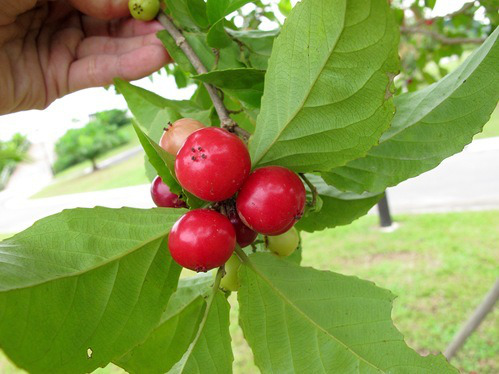 میوه ها شباهت زیادی به گیلاس داشته و در خوشه هایی تولید می شوند. این میوه ها گرد و براق بوده و رنگ آن از سبز کمرنگ (در میوه های نارس) تا قرمز پررنگ (در میوه های رسیده و بالغ) متغیر است. هر میوه ها حدود یک تا سه سانتیمتر قطر دارد. گوشت میوه ترد ولی دارای مزه ای اسیدی و ترش است. این میوه ها خوراکی بوده ولی معمولاً به صورت تازه خوری مصرف نمی گردند و اغلب در مرباها، کنسروها و شربت ها مورد استفاده قرار می گیرند.