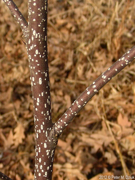 پوست ساقه سیاه توسه خاکستری رنگ و سطح آن پوشیده از تعداد زیادی برجستگی های منفذمانند (عدسک ها) می باشد.