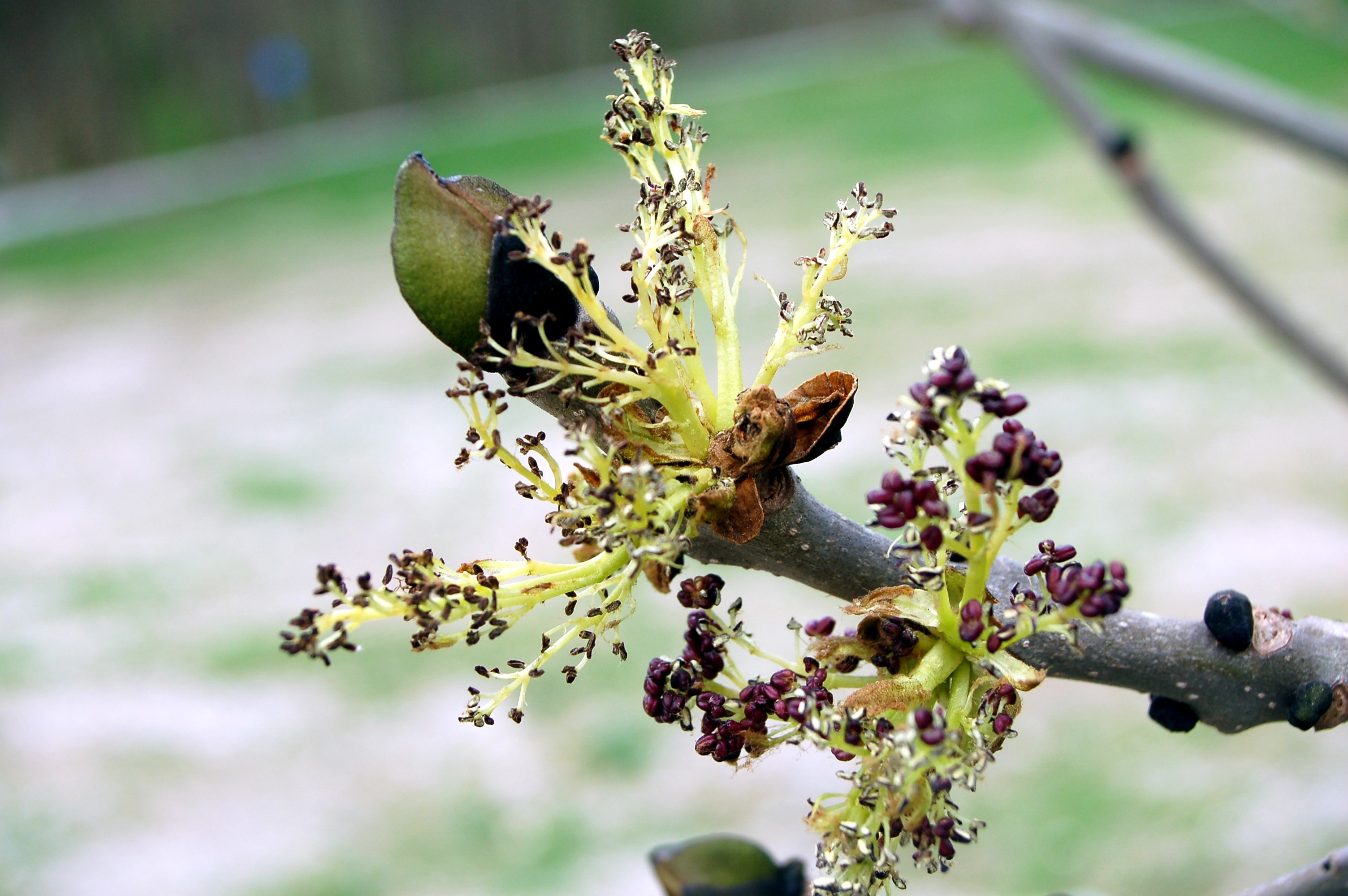 درختی است با تاج کروی که در جوانی فرم باز و در بلوغ تاجی متراکم دارد. این گیاه جزو درختان خزاندار است که طول تنه اصلی آن تا 2 متر نیز می رسد و دارای یک تاج بلند نیز می باشد. پوست تنه ی درختان جوان صاف و به رنگ خاکستری است که با مسن شدن درخت زبر و دارای شکاف های عمیق می شود. شاخه های آن محکم، به رنگ خاکستری است. برگ ها دارای 35-20 سانتیمتر طول، با 13-7 برگچه هستند. برگچه ها 12-3 سانتیمتر طول و 3-8/0 سانتیمتر پهنا دارند. برگ ها فاقد دمبرگ و دارای حاشیه دندانه دار می باشند. برگ های زبان گنجشک در بهار روی درخت نمایان می شوند و در فصل پاییز خزان می کنند. برگ های خزان کننده رنگ خاصی ندارند و اغلب به رنگ سبز کم رنگ دیده می شوند. گل های این درخت قبل از باز شدن برگ ها نمایان می گردند. عمر گل های ماده در این گیاه بیشتر از گل های نر است؛ رنگ آنها ارغوانی تیره و فاقد گلبرگ می باشد. گرده افشانی در این گیاه توسط باد صورت می گیرد. بر روی یک درخت هم گل های نر و هم گل های ماده می تواند وجود داشته باشد. میوه این گیاه سامار به طول 5/4-5/2 سانتیمتر و پهنای 8-5 میلیمتر و اغلب بصورت آویزان از شاخه ها است. اگر میوه های این گیاه در زمانی که هنوز سبز هستند و بطور کامل نرسیدند جمع آوری و کشت گردند، مستقیماً جوانه می زنند اما میوه های قهوه ای رنگ و کاملاً رسیده تا 18 ماه پس از کشت هم ممکن است جوانه نزنند.