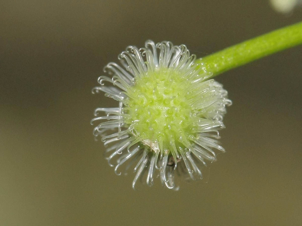 میوه ها به قطر 2 تا 4 میلیمتر و به صورت منفرد تشکیل می شوند که هر میوه با زائده ای قلاب مانند و نازک احاطه شده است که این زائده به پراکندگی آن هنگام برخورد به بدن حیوانات کمک می کند.
