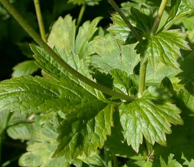 برگ ها در ابتدا به صورت متناوب و رزت روی ساقه قرار گرفته اند. برگ های رزتی به صورت پرمانند با یک تا چهار جفت برگچه و یک برگچه انتهایی دیده می شوند. برگچه انتهایی معمولاً 3 لوبی بوده و برگچه ها دارای لوب یا حاشیه ای دندانه دار هستند. رگبرگ های زیرین برجسته، کرکدار، خاکستری رنگ می باشند. گوشوارک های بزرگ نیز مانند برگچه ها دارای حاشیه ای دندانه دار هستند.