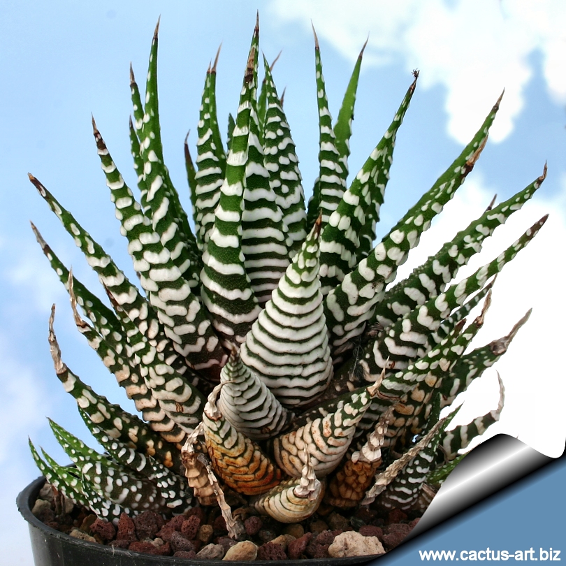 برگهای گوشتی و آبدار آلوئه گورخری، در کنار یکدیگر به صورت به هم چسبیده قرار میگیرند