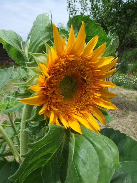 هنگامیکه آفتابگردان گل میدهد طبق گل (قسمت پائین گل که مانند بشقابی