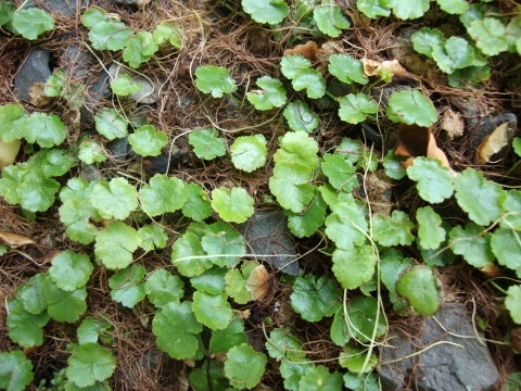 Hydrocotyle rotundifoliawater pennywort که به فارسی قدح مریم آبی نامیده میشود، گیاهی از خانواده آرالیاسه بومی هند، ایسلند، ماداگاسکار می باشد. نیاز های این گیاه عبارتند از نور: متوسط رطوبت: خیلی مرطوب دمای محیط: نواحی معتدل و گرم خاک: خاک های بسیار مرطوب