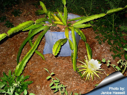 Hylocereus undatusDragon fruit که به فارسی کاکتوس میوه اژدها نامیده میشود، گیاهی از خانواده کاکتوس بومی جنوب مکزیک می باشد. نیاز های این گیاه عبارتند از نور: زیاد رطوبت: کمی خشک دمای محیط: نواحی گرمسیری خاک: خاک هایی با هوموس فراوان