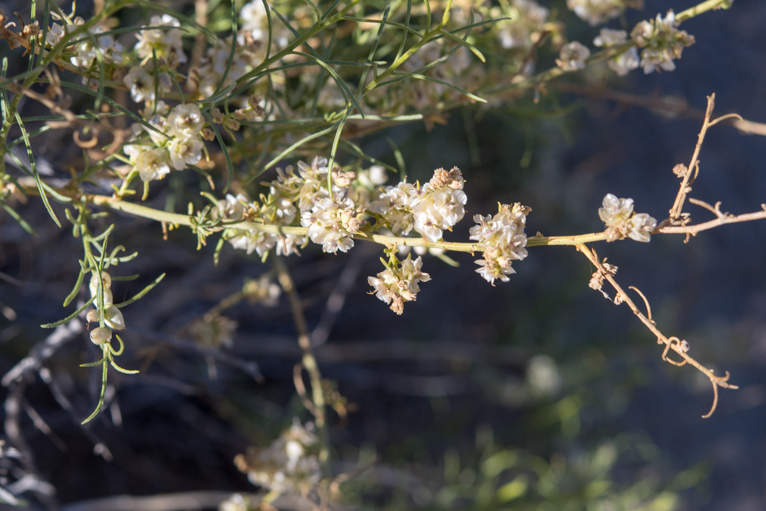 Hymenoclea salsola که در فارسی به «بوته خرگوشی بیابانی» شناخته میشود، گیاهی گلدار از تیره Asteraceae (کاسنیان) است. این گونه به جنس Hymenoclea تعلق دارد که شامل چند بوته بومی مناطق خشک آمریکای شمالی است. از نظر خویشاوندی، با بسیاری از تیرهبوتههای بیابانی خانواده کاسنیان مانند Ambrosia قرابت دارد. ساختار بوتهای و شاخههای سبز و نازک آن سازگاریهای آشکار با اقلیمهای خشک را نشان میدهد.