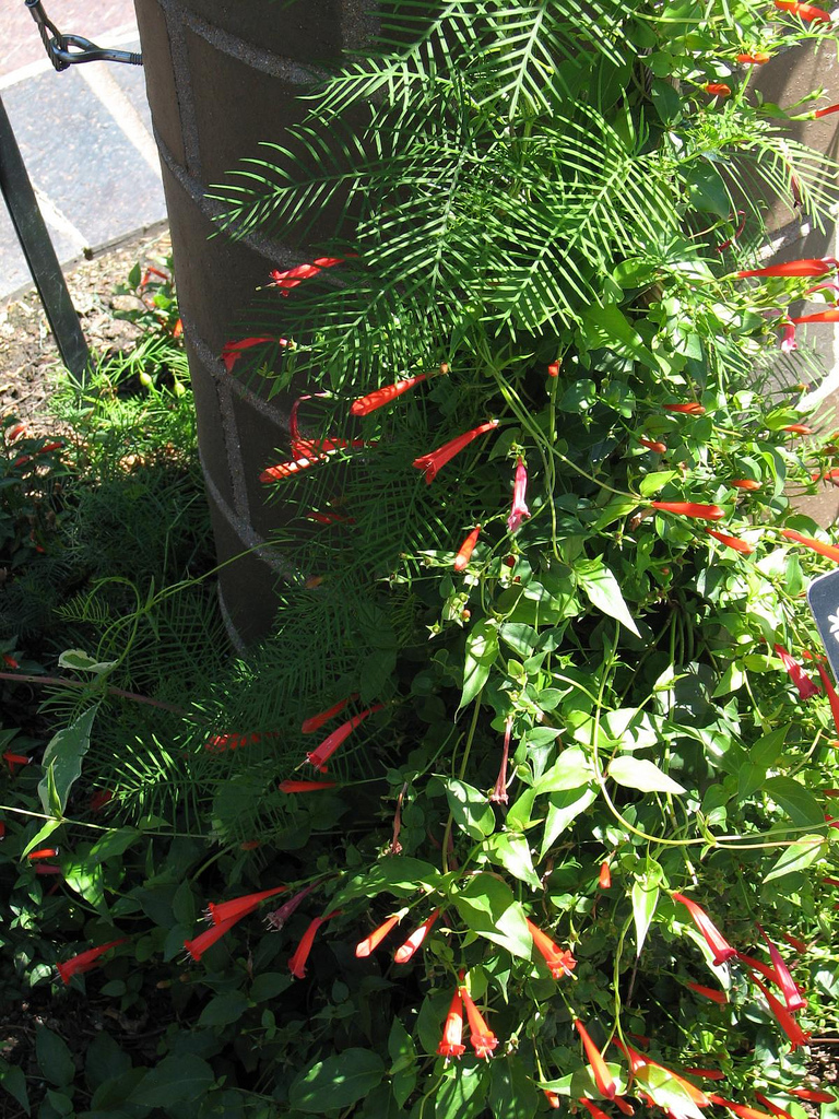 این گیاه دارای گل های جذاب به رنگ قرمز مایل به زرد است و شاخ و برگ آن به شکل سرخس مانند رشد می کند و به طول 6_10 متر می رسد و به ندرت ممکن است به 20 متر برسد. هر گل به صورت لوله ای حالت ستاره شکل پیدا می کنند
