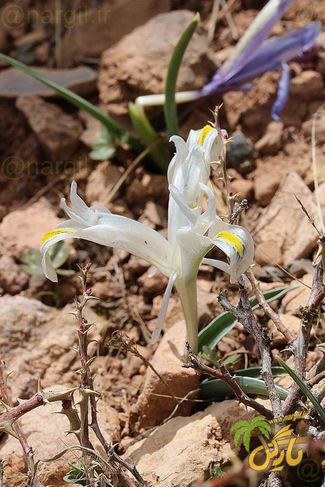 ارتفاع گیاه زنبق سیمین رگه 10 سانتیمتر است. این گونه شباهت نزدیکی با زنبق شفاف دارد و اختلاف مهم آنها در پوشش محافظ گل هاست به طوریکه در این گونه پوشش ها بلندتر از لوله گلپوش بوده، غشایی باریک و به رنگ سفید هستند در حالیکه در گونه زنبق شفاف به رنگ سبز و کوتاه تر از گلپوش هستند. این گیاه مدت زیادی با سایر گونه ها اشتباه می گردید. این گونه در دامنه های خشک از کرمان تا فارس، اصفهان و کردستان دیده می شود. فصل گلدهی اسفند تا فروردین است.