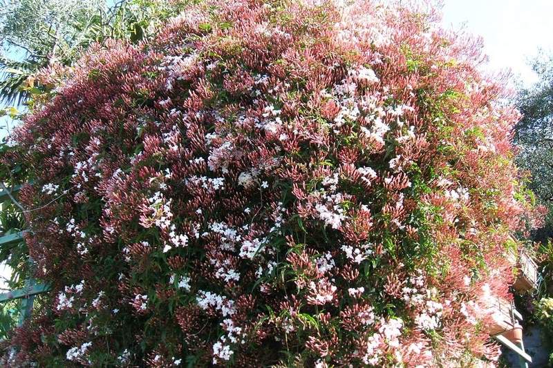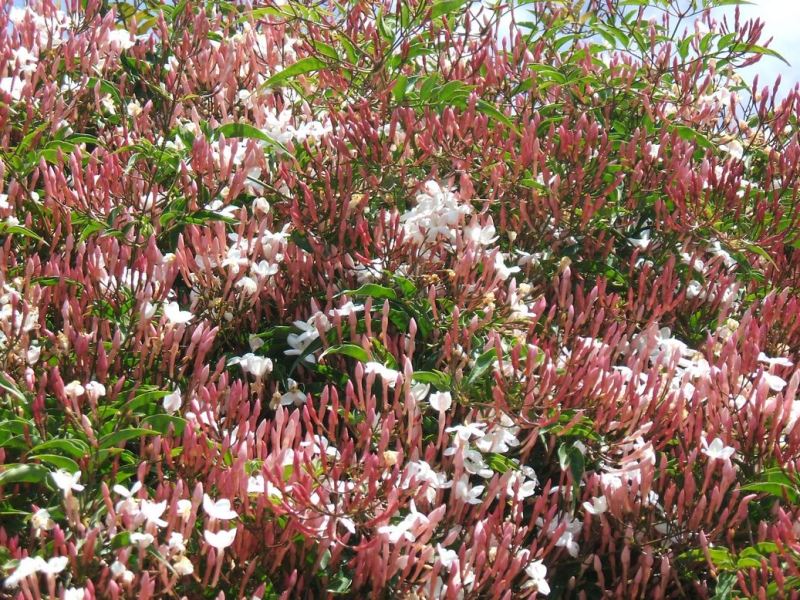 این گیاه تولید فراوانی از جوانه گل صورتی مایل به قرمز در اواخر زمستان و اوایل بهار دارد که به دنبال آن گل های ستاره ای پنج پر معطر که در حدود 2 سانتی متر قطر دارند نمایان میشود.